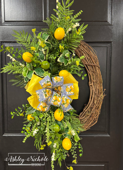 I was looking for something different and love the lemons, it reminds me of the days selling lemonade at the end of our driveway. Plus my daughter was graduating and their colors were orange and green so I need some to pop. Thank you so much again for making such a beautiful wreath.