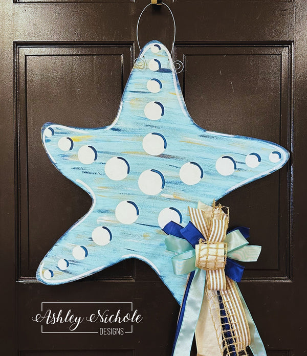 I absolutely love this starfish door hanger! It is the perfect porch accent to our coastal home in Beaufort. This makes the fourth coastal door hanger I have purchased. I love to rotate them for variety, and I love each one! Thank you to the skilled artists.