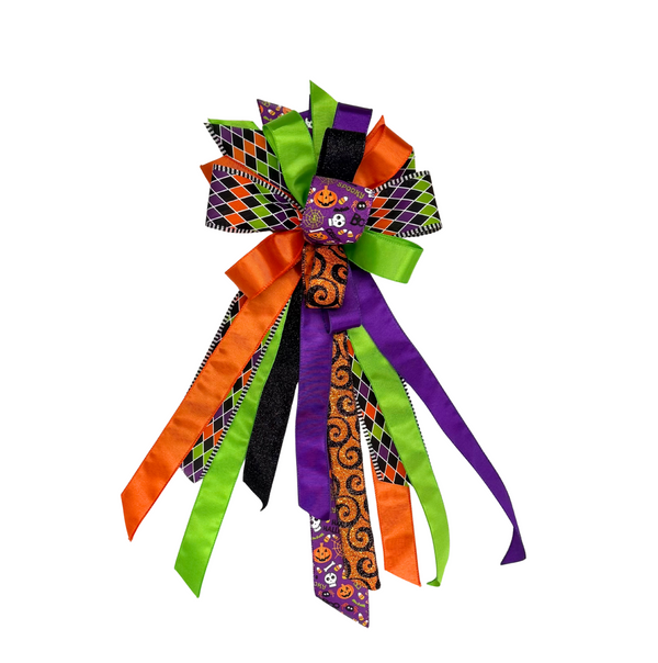 I have a topiary hanging on my door in the laundry room. I didn’t realize how easy it is to change the bow. This now is so cute and now the topiary is ready for Halloween.