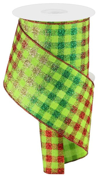 Glitter Gingham Check Wired Ribbon - 4" x 10yds
