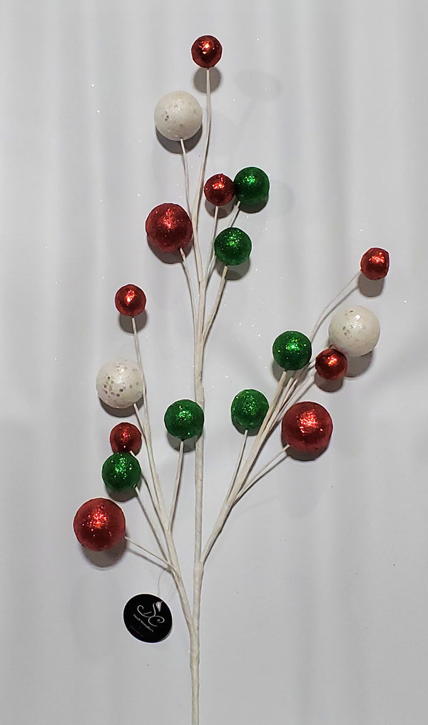 33" Whimsical Glitter Ball Spray - Red/White/Green
