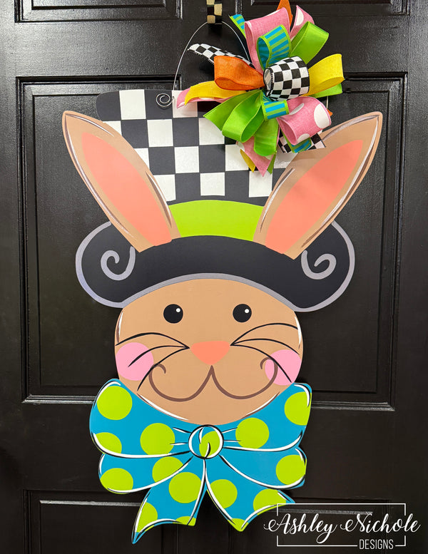 I bought the bunny checkered hat door hanger as a gift for my sister and she absolutely loves it! It was shipped so promptly and packaged so well! The size is nice and large and the colors are so bright! It is a showstopper for her front door! Thank you so much for your wonderful designs!
