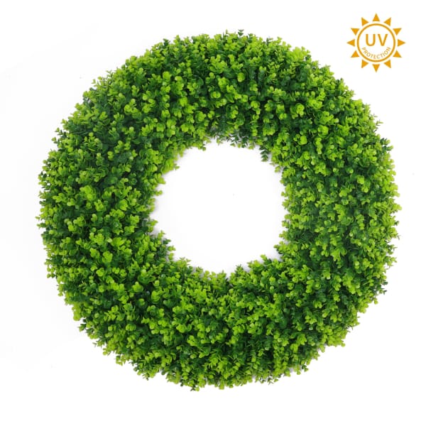 UV Proof - Meaning that it is conditioned to resist fading very well. This realistic Artificial Eucalyptus Wreath is UV protected making it great to use both indoor and outdoor.