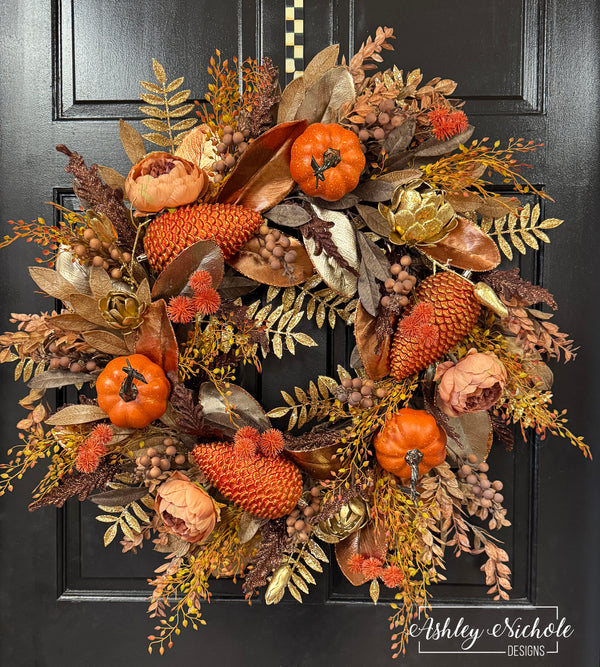 This wreath is built on a 18" Round Grapevine Wreath - 30" Round - Approximately