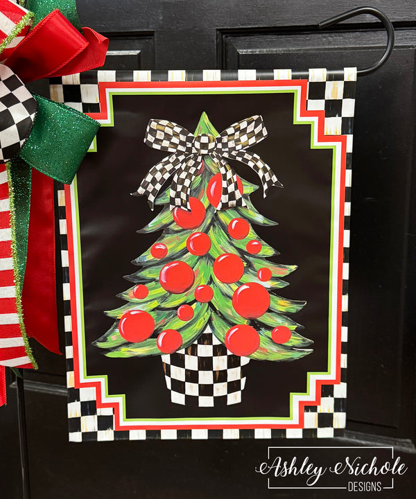 Christmas Tree - CHECKERED Bow - Vinyl Garden Flag