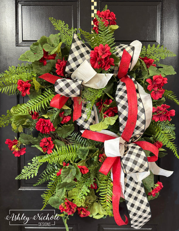 I am thrilled with this wreath! It is HUGE! I always have red geraniums in our front planters so this is perfect!