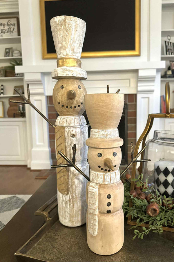 LARGE Mango Wood Snowman - White/Natural/Gold - 23"H x 11.5"L