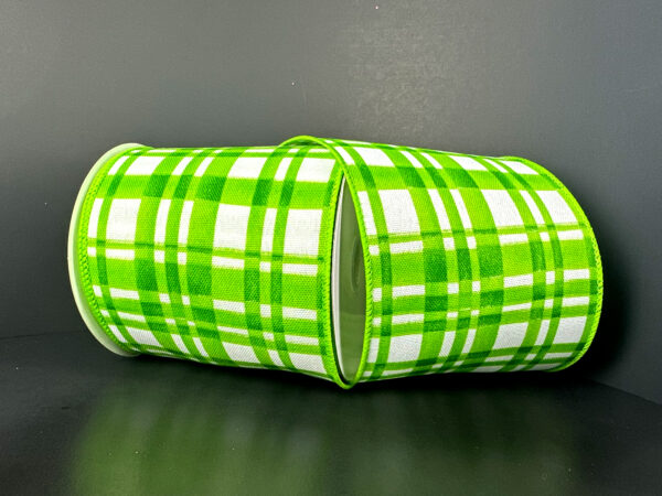 Green Watercolor Tuttola Plaid Wired Ribbon - 4" x 10yds