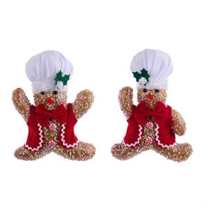 9" Icy Gingerbread Chef Ornament - Brown/Green/White/Red - One Arm Up