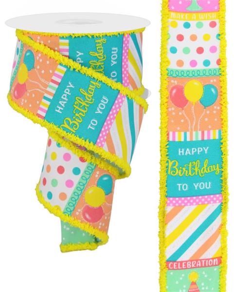 Birthday Blocks/Drift Wired Ribbon - 2.5" x 10yds