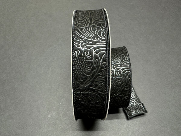 Black Embossed Wired Ribbon - 1.5" x 50yds