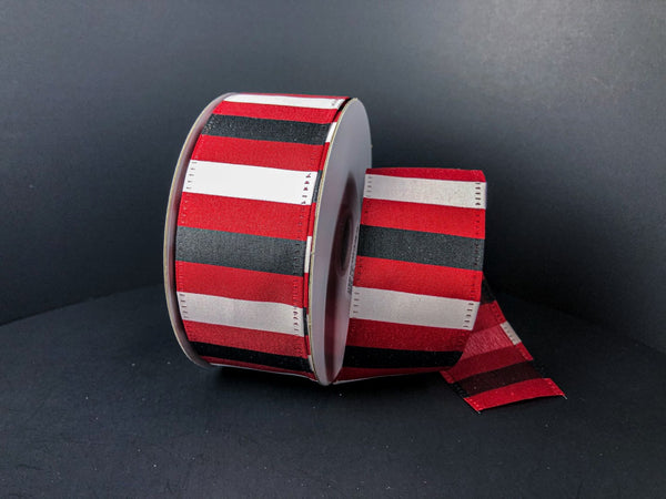 Black/White/Red Horizontal Stripes Wired Edge - 1.5" - 10 YDS