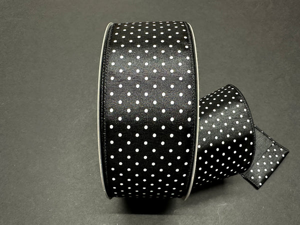 Black & White Microdot Wired Ribbon - 2.5" x 50yds