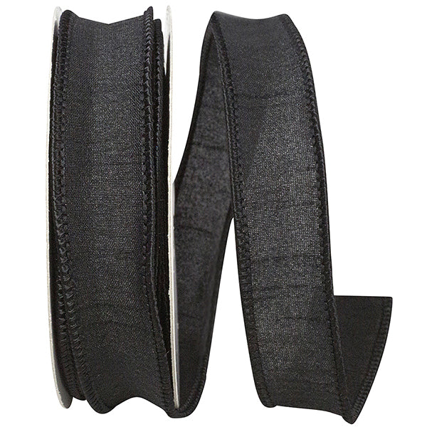 Black Dupioni Wired Ribbon - 7/8" x 10yds