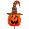 Jack-O-Lantern With Black Raggedy Hat - Metal Stake