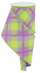 Lavender, Lime & Hot Pink Plaid Wired Ribbon - 4" x 10yds
