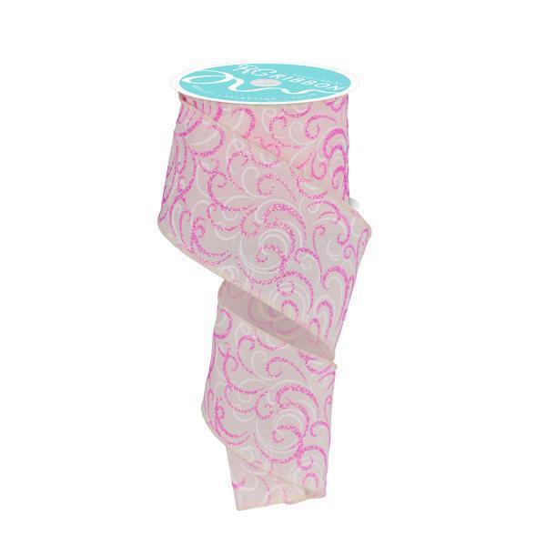 Multi Swirls Cream, Iridescent Pink & White Wired Ribbon - 2.5" x 10yds