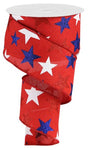 Patriotic Star on Red Burlap Wired Ribbon - 2.5"x10Yds