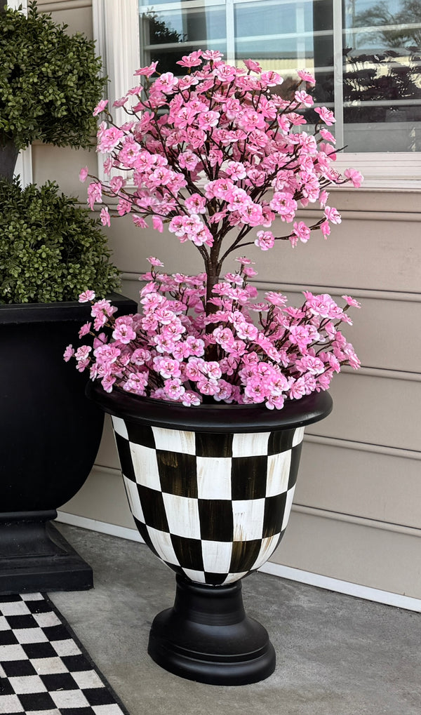 We have it displayed in our Hand-Painted Checkered urn planter - Click here to order planter: