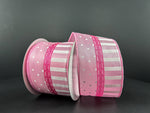 Pink Line/Dots and Stripes Wired Ribbon - 2.5" x 10yds