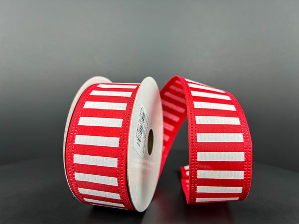Red & White Stripe Wired Ribbon - 1.5" x 10yds