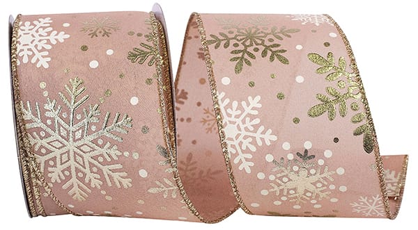 Rose Gold w/ Textured Snowflakes Wired Ribbon - 2.5" x 10yds