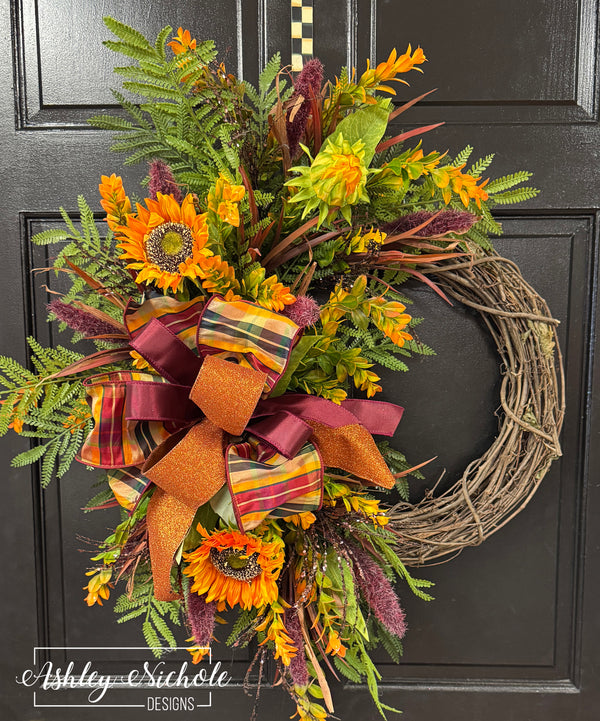The actual wreath had a more look of sunflowers than the website showed. Sunflowers are not my favorite so that is why I’m not as happy with it as I hoped. I have so many of your door wreaths and hangers and this is the first one I am not crazy about.