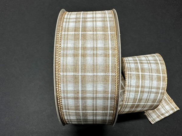 Tan & White Kennedy Plaid Wired Ribbon - 2.5" x 50yds