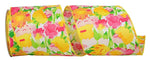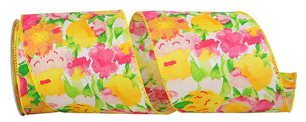 Yellow Bright Floral Wired Ribbon - 4" x 10yds